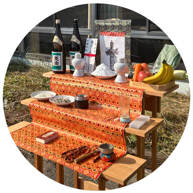 建物の解体や新築で土地に手を入れる際には、古来よりその土地に住まう神仏にご挨拶を行い工事の安全を祈ります。また新築、火入れの際には、新しくその土地に施主様が住まうことをご報告し、守護を願います。