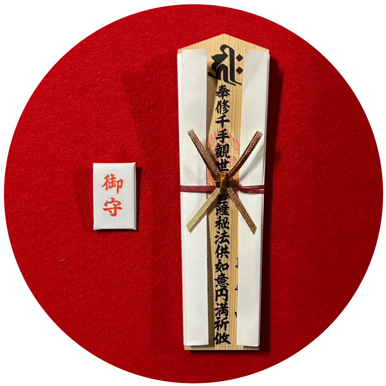 千手観音(正式には「千手千眼観世音菩薩」)は、千の手と、その手のひらにある千の眼で衆生のあらゆる苦しみを見つけ出し、漏らさず救いの手を差し伸べる慈悲深い仏さまです。その無限の慈悲と功徳から、「大悲観音」とも称され、二十八部衆(阿修羅・金剛力士など)を眷属として従えています。観音さまの中でもとりわけ現世利益の功徳が大きく、厄除け・開運・病気平癒をはじめ、夫婦円満・恋愛成就など、あらゆる願いを広く包み込む仏さまとして信仰されています。